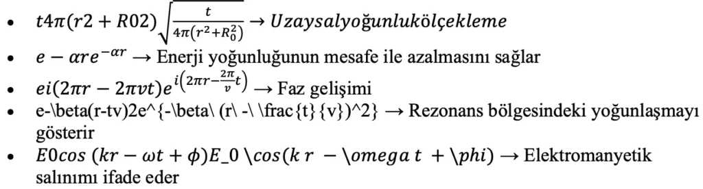 Bu dalga modeli, enerjinin rezonans noktalarında nasıl yoğunlaştığını ve faz uyumu ile nasıl dalgalandığını matematiksel olarak açıklar.