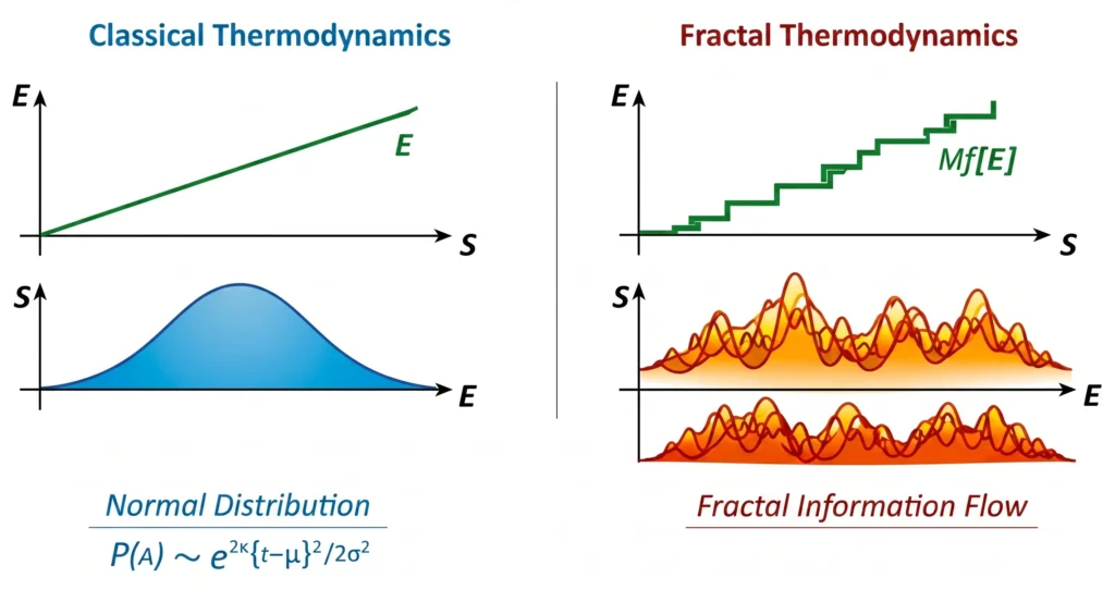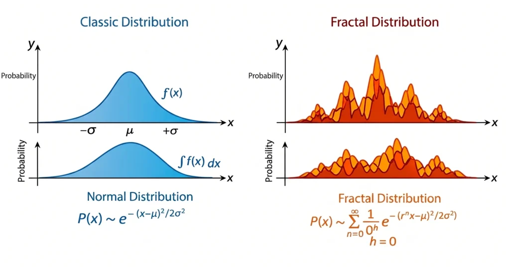 This difference visually and clearly demonstrates that fractal statistics carries a much richer information structure than classical distribution: while the classical distribution operates on a single plane of uncertainty, the fractal distribution distributes uncertainty in a resonant manner across scales.