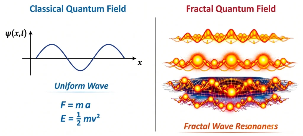 This difference visually and clearly demonstrates that fractal quantum fields present a much deeper, multi-scale, and resonant structure than classical quantum fields.