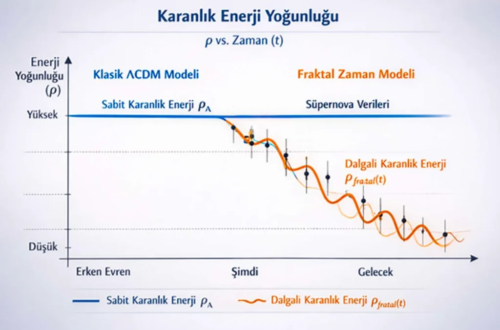 • Karanlık enerji sabit değil, zamanın fraktal yapısına bağlı olarak değişir.