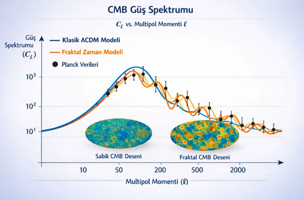 Şimdi bu modeli daha ileri taşıyıp, kozmik mikrodalga arka plan (CMB) verileriyle test edebiliriz. Böylece fraktal zaman modelinin evrenin erken dönem gözlemleriyle de uyumlu olup olmadığını inceleyebiliriz.