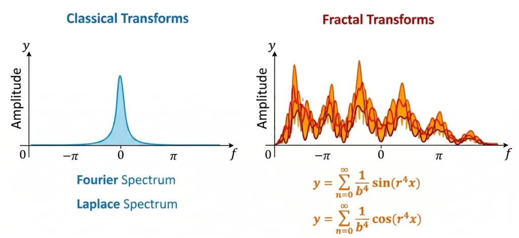 - 分形傅里叶: 多尺度频率网取代单一频率 → 模拟自然界复杂的振动。